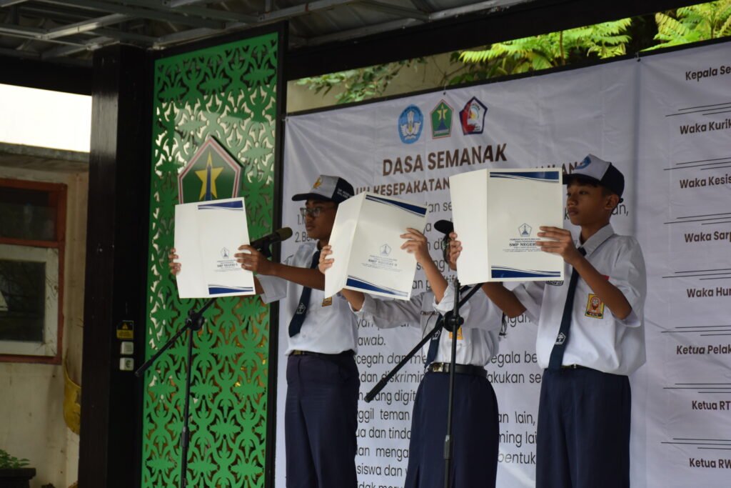 Dalam upaya mewujudkan visi mulia tersebut, SMP Negeri 9 Malang mengambil langkah konkret dengan menggelar deklarasi akbar bertajuk “Dasa Semanak” (Sepuluh Kesepakatan Sekolah Ramah Anak).